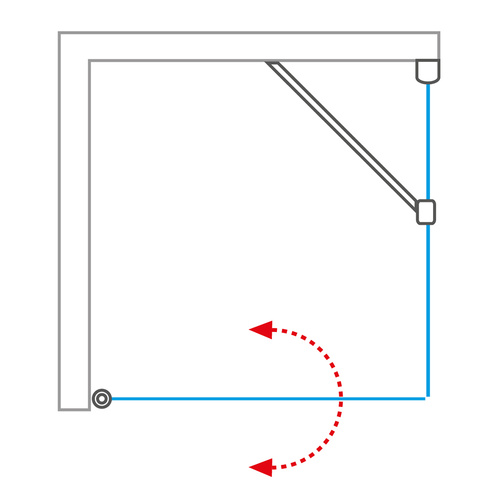 Zostava umožňuje vytvoriť štvorcový alebo obdĺžnikový kút podľa aktuálne dostupných rozmerov. Celý komplet je univerzálny, takže orientáciu dverí (ľavá/pravá) si zvolíte až pri samotnej inštalácii.