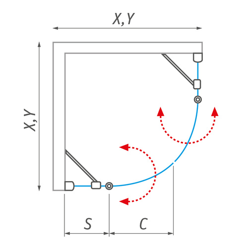 Štvrťkruhový sprchovací kút s dvojkrídlovými otváracími dverami